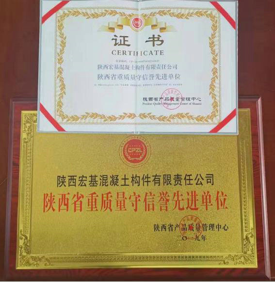 陜西省重質(zhì)量守信譽(yù)先進(jìn)單位榮譽(yù)