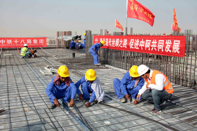 5、中鐵十八局集團(tuán)國(guó)際公司沙特公司建設(shè)者在施工一線施工(伍振 攝)