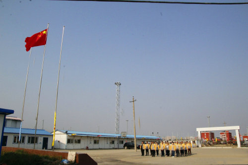 迎著朝陽升國旗