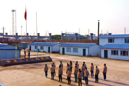 朝霞相映,紅旗飄飄。這一天,東極佳木斯的太陽格外的鮮艷,哈佳鐵路項目部全體員工迎著朝霞前往二工區(qū),在光輝的照射下舉行隆重的升旗儀式。威武雄壯的國歌聲響徹每一個角落,全體員工激情澎湃,在注目禮下,五星紅旗冉冉升起。參加升旗儀式的員工紛紛表示:“在70周年親眼看到國旗升起,心中充滿了自豪與驕傲,共同祝愿祖國繁榮富強,猶如紅旗迎風(fēng)飄揚。”