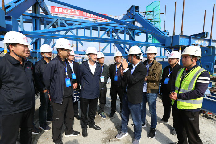 —— 與會人員觀摩336國道神木至店張公路四支河特大橋高墩施工