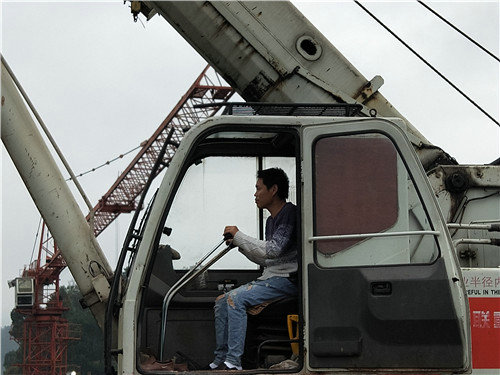 離地數(shù)十米的T梁上,老馬正對吊車進(jìn)行檢查。他一邊檢查一邊對我說:“在開始工作前不檢查不行,這不但是對自己負(fù)責(zé),也是對別個(其他人)負(fù)責(zé)。有些吊車司機(jī)會跳過這一環(huán)節(jié)直接開始吊運,萬一出了問題就追悔莫及了。”他繞著吊車走圈子,逐一檢查支腿,又繞回車前對吊鉤、鋼絲繩等部位進(jìn)行了認(rèn)真檢查。之后,他又目測吊車與被吊物的距離并和T梁上的管理員老郭交流起今天的工作任務(wù),還時不時就具體問題提出疑惑和建議。把每個細(xì)節(jié)都確認(rèn)后,老馬才坐進(jìn)駕駛室。他嫻熟地運用著操縱桿,目光專注、神色認(rèn)真。我也不再搭話,走遠(yuǎn)避開。吊車緩緩運轉(zhuǎn),吊臂伸長,吊鉤下放,老馬的工作開始了。