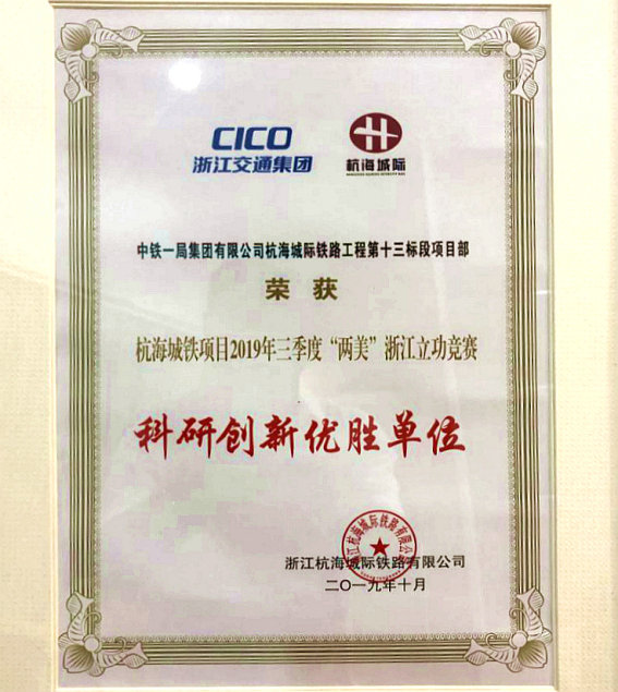 (海寧訊)10月22日,從浙江杭海城際鐵路有限公司2019年三季度“兩美”浙江重點(diǎn)工程立功競(jìng)賽總結(jié)表彰會(huì)上獲悉,中鐵一局建安公司杭海城際項(xiàng)目在此次立功競(jìng)賽中獲得多項(xiàng)榮譽(yù)。