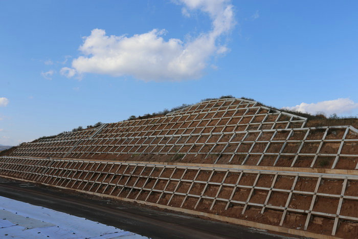 路基網(wǎng)格護坡記者在現(xiàn)場看到,K71+150涵洞處140米的路基正在加緊填筑,這段路基2萬多方土方拖了三年多不能施工,剩余31塊涵洞蓋板無法吊裝,成為全線的腸梗阻。原因就是一家磚廠征地拆遷補償問題一直未解決,磚廠老板多次阻工,項目部一直向業(yè)主、地方政府反映情況,卻沒有任何效果,使施工單位深受其害,施工成本增加了幾倍。10月13日,平?jīng)鍪幸晃桓笔虚L前來了解高速公路征遷方面的問題,項目部立即將此事反映上去。事情得到解決后,為防夜長夢多,張永連夜組織吊車進行涵洞蓋板吊裝。每塊蓋板重達五、六噸,張永不放心一直在現(xiàn)場指揮,當?shù)?1塊蓋板吊裝完時,已經(jīng)是凌晨兩點了。第二天一早,他又生龍活虎地出現(xiàn)在施工現(xiàn)場,指揮路基填筑施工。