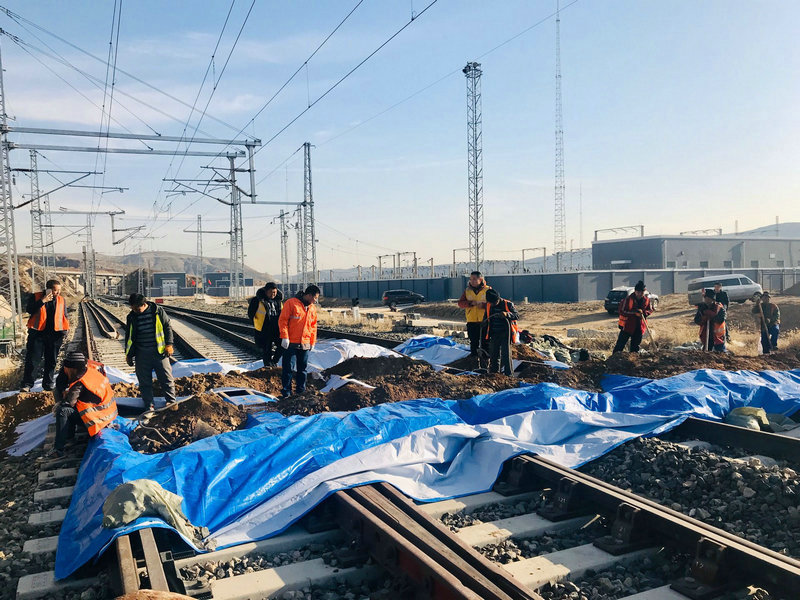 既有10KV貫通線準(zhǔn)朔鐵路過軌施工現(xiàn)場