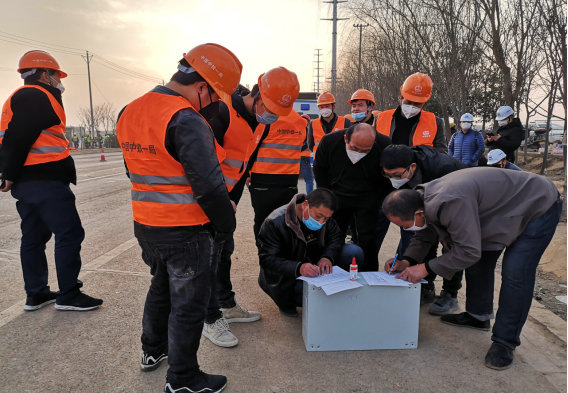 現(xiàn)場(chǎng)服務(wù)保障先鋒崗黨員郝曉琨和屈昆一次次去500米以外的工地門(mén)口接工人、登記、量體溫、酒精噴灑消毒、接送作業(yè)工具、親自為大家送飯菜。當(dāng)現(xiàn)場(chǎng)作業(yè)人員反映飯菜吃不慣的時(shí)候,他立即讓屈昆開(kāi)車(chē)去高陵城里一家一家找,終于找到了符合大家口味的供應(yīng)飯店。