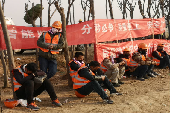 2月11日早上7點(diǎn)30分,在作業(yè)面上忙碌了一個(gè)通宵的中鐵一局增援團(tuán)隊(duì)出現(xiàn)在了建設(shè)工地旁的馬路上,大家或坐在地上雙手托腮小憩,或倚靠在樹(shù)干上假寐,等公司租賃的大巴到來(lái)后在車(chē)上休息了一個(gè)上午。