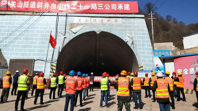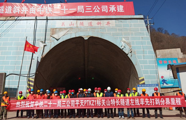 圖為關(guān)山特長(zhǎng)隧道左洞施工至分界里程儀式現(xiàn)場(chǎng)