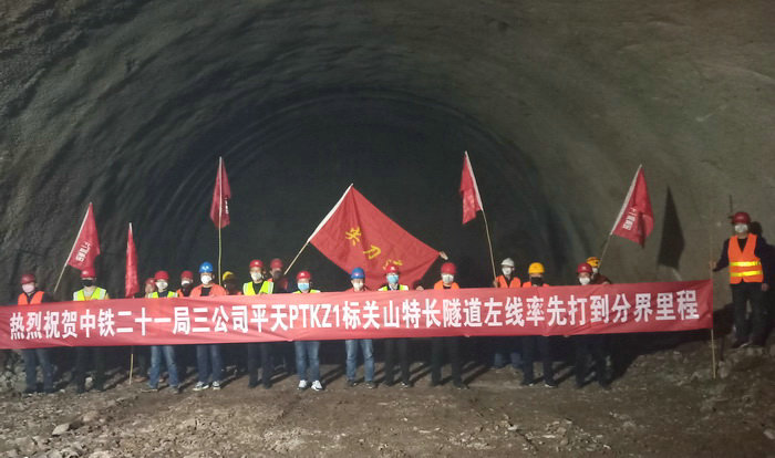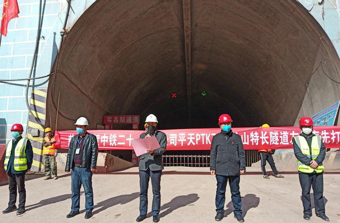 圖為項(xiàng)目辦領(lǐng)導(dǎo)與建設(shè)者在貫通點(diǎn)祝賀左貫通 該隧道自2016年4月10日開(kāi)工建設(shè)以來(lái),PTKZ1標(biāo)項(xiàng)目充分發(fā)揚(yáng)團(tuán)結(jié)和諧、戰(zhàn)斗有力、百折不撓、永爭(zhēng)第一的鐵道兵精神和改革創(chuàng)新、精益求精、精細(xì)管理的“工匠”精神,堅(jiān)持機(jī)械化施工,采用新工藝、新方法,引進(jìn)國(guó)際先進(jìn)的“聚能水壓爆破新技術(shù)”,克服了關(guān)山地質(zhì)構(gòu)造復(fù)雜、圍巖軟弱破碎、進(jìn)口端淺埋段下穿304省道、工程材料短缺、關(guān)山特殊極端氣候、雪災(zāi)、洪災(zāi)、新冠疫情等重重困難,尤其是今年初在新型冠狀病毒肆虐神州大地的特殊時(shí)期,PTKZ1標(biāo)項(xiàng)目關(guān)山隧道斜井架子隊(duì)不畏艱辛,勇于擔(dān)當(dāng),科學(xué)組織,周密部署,嚴(yán)格防控,春節(jié)期間繼續(xù)保持正常施工,確保了隧道左洞早日安全順利掘進(jìn)至分界里程,為關(guān)山隧道全面貫通奠定了堅(jiān)實(shí)基礎(chǔ),也為全線其他各標(biāo)段后續(xù)施工樹(shù)立了榜樣,很好的發(fā)揮了駐甘央企的示范和引領(lǐng)作用。中鐵二十一局三公司副總經(jīng)理、項(xiàng)目負(fù)責(zé)人魏惠民在隧道左洞順利打到分界里程之際,即興賦詩(shī)一首:“鐵軍不畏關(guān)山難,萬(wàn)米長(zhǎng)隧身手顯。洞口穿越淺埋層,洞內(nèi)再斗軟巖層。雪災(zāi)洪災(zāi)懼畏懼,新冠病毒亂又添。四年艱辛風(fēng)雨路,今日分界戰(zhàn)旗舞”。真實(shí)道出了PTKZ1標(biāo)項(xiàng)目在關(guān)山隧道施工道路中經(jīng)歷“九九八十一難”取得“真經(jīng)”的不易。