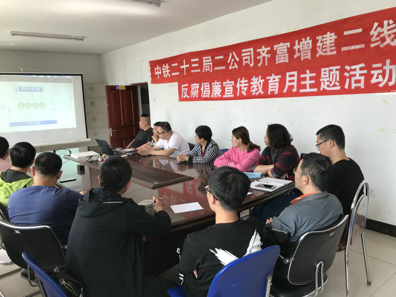 為進(jìn)一步增強(qiáng)項(xiàng)目干部的個(gè)人修養(yǎng)和廉潔自律的自覺性,筑牢拒腐防變的思想道德防線,促進(jìn)項(xiàng)目干部的廉潔守法,更好推動“反腐倡廉宣傳教育月”活動的進(jìn)展,5月24日中鐵二十三局集團(tuán)二公司齊富項(xiàng)目部組織項(xiàng)目全體黨員、群眾干部集中觀看了黨風(fēng)廉政警示教育片《動漫講規(guī)矩》。