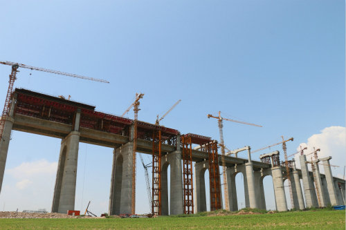 面對(duì)76米高空支架現(xiàn)澆復(fù)雜的工況,在沒(méi)有成功經(jīng)驗(yàn)借鑒的情況下,中國(guó)鐵建大橋局西北公司蒙華項(xiàng)目團(tuán)隊(duì)穩(wěn)扎穩(wěn)打,積極總結(jié)了公路梁首節(jié)段順利澆筑的成功經(jīng)驗(yàn)。在加強(qiáng)施工安全質(zhì)量及技術(shù)創(chuàng)新管理的同時(shí),向圓滿完成北引橋剩余施工任務(wù)發(fā)起最后沖刺,向成為超高墩梁部現(xiàn)澆施工高水平的技術(shù)團(tuán)隊(duì)砥礪前行。
