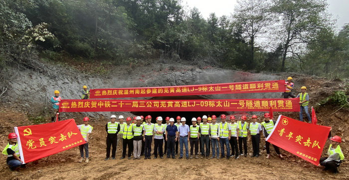 圖為建設(shè)者慶祝隧道貫通 為順利打通太山1號隧道,項(xiàng)目部精心策劃,科學(xué)組織,制定切實(shí)可行的施工方案和各項(xiàng)保障措施,堅(jiān)持按規(guī)范要求施工,在確保安全質(zhì)量的前提下,搶抓施工進(jìn)度。在隧道施工中,由黨員突擊隊(duì)、青年突擊隊(duì)打頭陣,采用臺階法開挖,嚴(yán)格執(zhí)行“先探測、管超前、短進(jìn)尺、弱擾動、強(qiáng)支護(hù)、快封閉、勤量測”的原則,在各級領(lǐng)導(dǎo)的關(guān)懷和幫助下,取得了全線最長隧道率先貫通的階段性勝利,順利完成了蕪黃高速項(xiàng)目辦下達(dá)的“縣縣通”節(jié)點(diǎn)目標(biāo)任務(wù),為2021年順利通車打下了堅(jiān)實(shí)的基礎(chǔ)。