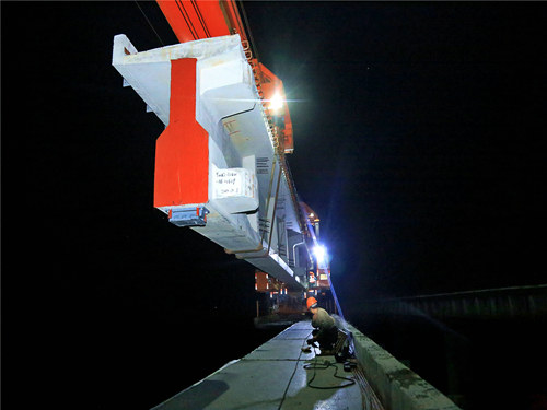 自10月19日開始架設(shè)該特大橋以來,全體參建人員在克服重慶地區(qū)秋分時節(jié)多雨大霧、施工地段窄小濕滑、移梁施工工藝繁瑣、安全生產(chǎn)風(fēng)險大等系列困難的前提下,嚴(yán)格執(zhí)行成都局集團臨近既有線施工相關(guān)規(guī)定,大力優(yōu)化運梁架梁方案,合理優(yōu)化施工組織結(jié)構(gòu),并結(jié)合天氣情況,第一時間倒排鋪架工期,及時做好現(xiàn)場機械設(shè)備與人員的調(diào)配等,最終在保工程質(zhì)量、施工安全、環(huán)境保護(hù)的前提下,確保了既定節(jié)點目標(biāo)順利實現(xiàn)。