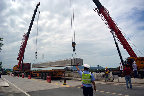 為順利完成鹽灶大橋架梁施工,項(xiàng)目部多措并舉,始終堅(jiān)持安全第一、優(yōu)質(zhì)高效的原則,確保架梁施工順利進(jìn)行。一是多次優(yōu)化施工組織方案,統(tǒng)籌規(guī)劃,詳細(xì)制定施工計(jì)劃,責(zé)任到人;二是施工現(xiàn)場(chǎng)連續(xù)作業(yè),確保架梁按時(shí)完成;三是為確保人、車(chē)通行安全,項(xiàng)目部與交警協(xié)商,由交警在現(xiàn)場(chǎng)進(jìn)行交通疏導(dǎo)。