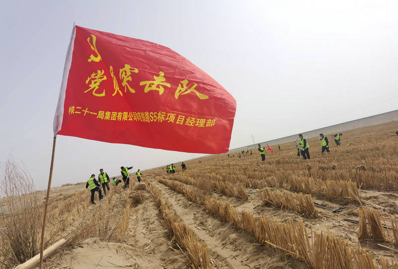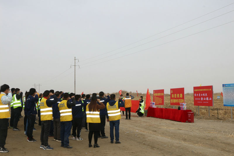 4月8日上午,和若鐵路各參建單位在中鐵二十一局集團和若鐵路S5標管段范圍內(nèi)的風沙防護植物種植區(qū)域的黨員示范種植區(qū),開展了“我為和若鐵路造林防沙,讓黨旗在防風固沙一線高高飄揚”為主題的義務(wù)植樹暨主題黨日活動。