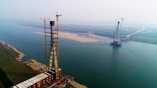 圖為湖北石首長江大橋施工