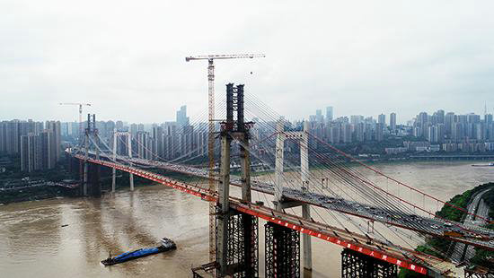 圖為重慶軌道交通工程鵝公巖長江大橋施工