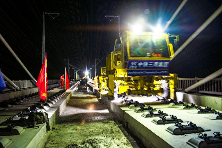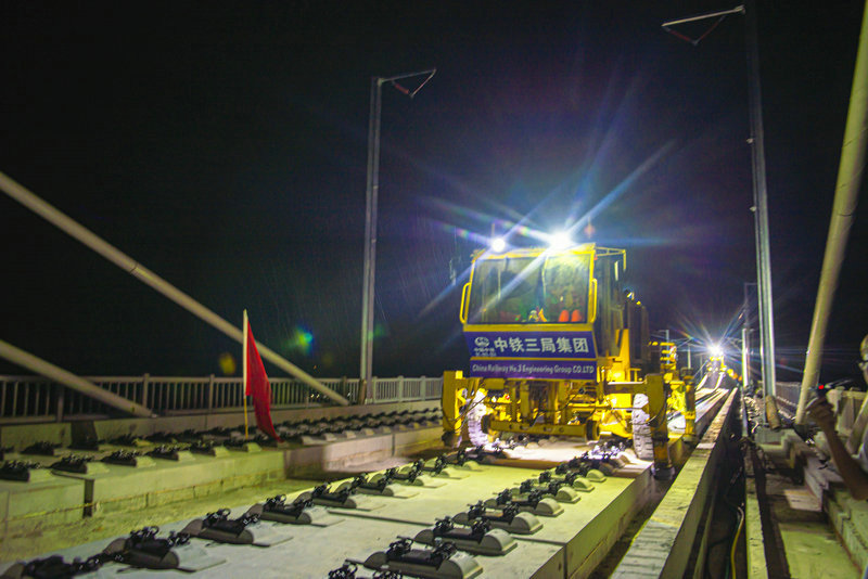 位于黃岡市黃州區(qū)與浠水縣交境處的巴河特大橋是目前國內(nèi)高速鐵路首座三塔部分斜拉橋工程,全長約2961米,是黃黃高鐵鐵路全線重點控制性工程之一。中鐵三局線橋公司黃黃項目部按照武九公司黃岡指揮部對黃黃高鐵開通運營的戰(zhàn)略部署,克服種種不利因素,多措并舉,以黃黃高鐵浠水南站為鋪軌中心,采用兩臺WZ-500型長鋼軌鋪設機組,最終實現(xiàn)大里程黃梅方向 6月19日首鋪。鋪軌期間參建將士風雨兼程,戰(zhàn)雨天、斗酷暑、晝夜奮戰(zhàn)、攻克多種技術(shù)難關(guān),不斷刷新鋪軌進程,于7月27日黃梅東站右線接軌、8月9日黃梅東站左線接軌。至此黃黃高鐵項目浠水南站至黃梅之間全線鋪軌告捷,完成黃黃高鐵與安九高鐵黃梅東站順利接軌成功。