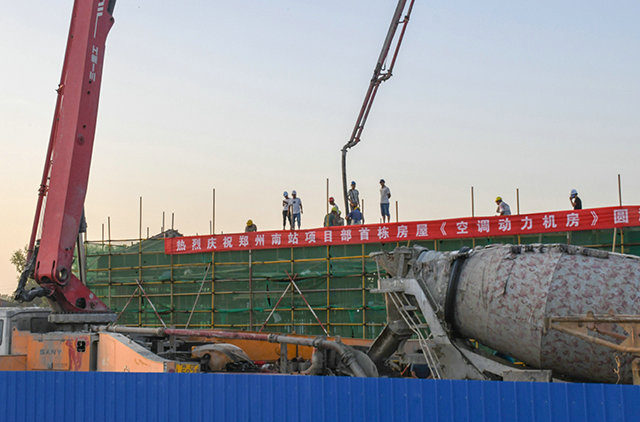 9月3日,由中鐵七局五公司承建的鄭州南站項目首棟房屋工程空調(diào)動力機(jī)房順利封頂。