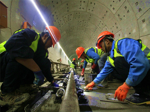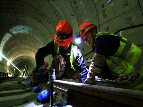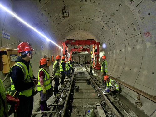 ?。ㄗT帥)10月27日凌晨時(shí)分,城市的萬(wàn)家燈火逐漸熄滅,但中鐵一局集團(tuán)昆明地鐵2號(hào)線項(xiàng)目部的施工工地上卻燈火通明,轟鳴陣陣,40余名作業(yè)力量正在隧道內(nèi)忙著進(jìn)行混凝土澆筑、道床預(yù)鋪等施工任務(wù)。
