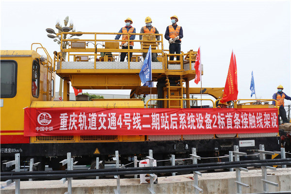 重慶軌道交通4號(hào)線二期站后系統(tǒng)設(shè)備2標(biāo)段施工范圍為王家城站(不含)~石船站~石船車輛段(含),正線線路總長(zhǎng)13.8公里,其中高架站3座(桐梓林站、石船南站、石船站)、地下站4座(生基堡站、龍興站、高石塔站、普福站),石船車輛段1座。共需架設(shè)接觸網(wǎng)導(dǎo)線69.1條公里。預(yù)計(jì)2022年建成通車。