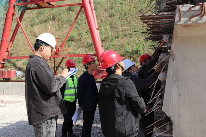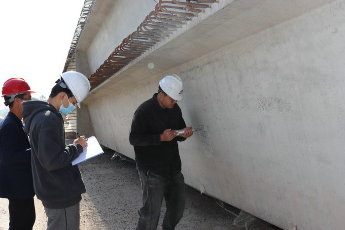 圖為在制梁場檢查梁體質(zhì)量 檢查組一行對(duì)正在加緊攤鋪水穩(wěn)層施工現(xiàn)場進(jìn)行了實(shí)地取芯檢測,全方位了解現(xiàn)場施工安全質(zhì)量、進(jìn)度并對(duì)攤鋪路段進(jìn)行抽樣取芯壓試,對(duì)墩柱、橋梁、現(xiàn)澆梁、鋼板組合梁實(shí)體進(jìn)行了全面質(zhì)量檢測,對(duì)所取得的質(zhì)量數(shù)據(jù)給予肯定和好評(píng),同時(shí)針對(duì)檢查出現(xiàn)的共性問題提出了指導(dǎo)性改進(jìn)意見。對(duì)拌合站水泥、河砂、碎石進(jìn)場原材料進(jìn)行了抽樣檢測,并對(duì)水泥、河砂、石料進(jìn)場質(zhì)量控制進(jìn)行了細(xì)致的了解,要求項(xiàng)目嚴(yán)把原材料進(jìn)場關(guān),高度重視材料質(zhì)量,杜絕不合格材料進(jìn)場,牢固樹質(zhì)量紅線意識(shí),在保證安全質(zhì)量的前提下,推動(dòng)施工順利進(jìn)行,任何一批次材料都經(jīng)得起檢驗(yàn)。