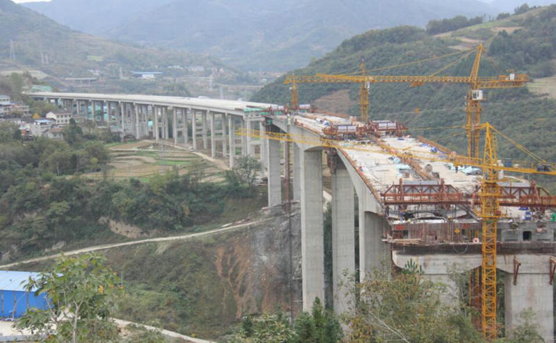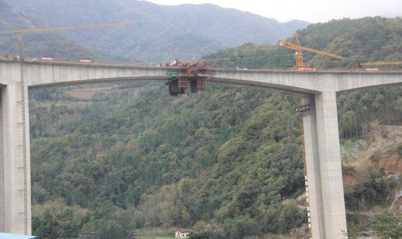 大坪涪江特大橋位于綿陽市平武縣古城鎮(zhèn)大坪村,是廣平高速公路全線跨度最大、最高的連續(xù)剛構(gòu)橋。該橋左線橋長932m,右線橋長918m,單幅橋?qū)?2m,最高橋墩81m,主墩為7*8m的薄壁空心墩,機械設(shè)備和模板投入量大,精確度要求高,施工難度較大。在合攏段施工“攻堅”開始前,該項目部就技術(shù)、質(zhì)量、安全進行細致交底,落實領(lǐng)導(dǎo)帶班干部值班制度,提前測量記錄近期氣溫變化,認真評估并確定澆筑時段。按照“技術(shù)+質(zhì)量+安全+物資+現(xiàn)場”原則細化責(zé)任分工,全程盯控澆筑步驟。在澆筑過程中,嚴格把控混凝土澆筑質(zhì)量,從材料檢查到振搗層層審驗;澆筑完成后,及時規(guī)范操作養(yǎng)護作業(yè)。