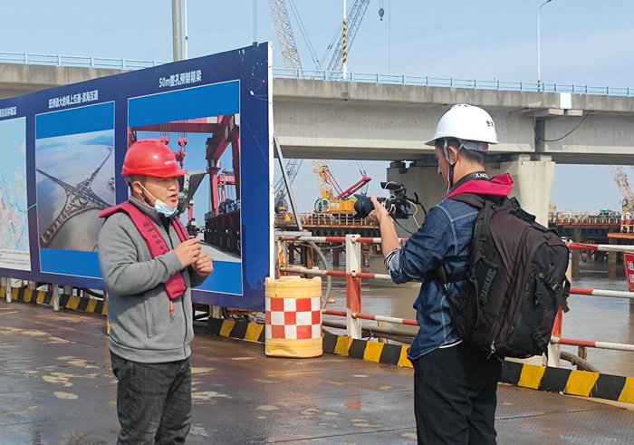 杭甬復(fù)線寧波一期高速公路有限公司、寧波市攝影家協(xié)會(huì)組織《新華社》《中新社》《浙江日報(bào)》《學(xué)習(xí)強(qiáng)國》《浙江日報(bào)》《浙江旅游交通導(dǎo)報(bào)》《寧波日報(bào)》《寧波晚報(bào)》等10家中央媒體、省級(jí)媒體記者以及多次獲得過國家級(jí)攝影金獎(jiǎng)、銀獎(jiǎng)的浙江省、寧波市著名攝影家到杭甬復(fù)線集體采風(fēng),對全線5個(gè)標(biāo)段集中進(jìn)行現(xiàn)場采訪、拍攝有亮點(diǎn)的圖片,規(guī)模和聲勢較大,以圖片攝影為主,用圖片展示項(xiàng)目風(fēng)采和魅力。上去9點(diǎn)40分,多家媒體記者和攝影家?guī)е?ldquo;長槍短炮”、無人機(jī)來到位于3號(hào)支棧橋位置,依海堤,或憑欄,聚焦氣勢宏偉的濱海高架橋和跨越直徑4.5米輸油管道的懸臂連續(xù)梁,快門“咔嚓咔嚓”響個(gè)不停,淡黃色的海水與大橋融為一體的畫面在一瞬間定格。一臺(tái)臺(tái)無人機(jī)在“嗚嗚”聲中起飛,在幾百米高空變換著不同角度,將正在建設(shè)的大橋畫面拍攝下來。記者、攝影家難遇這么壯觀的場景,興致勃勃,面露笑容,豐富的素材資源為攝影者提供了絕佳的拍攝機(jī)會(huì),人人收獲多張不同角度、不同畫面的美圖。