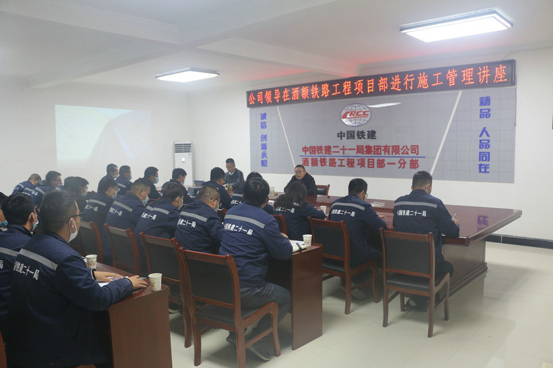 11月23日,中鐵二十一局四公司酒額鐵路工程項目部召開了施工管理專題講座,公司副總經(jīng)理祁濤參加會議并進行了施工管理的講解。會議由項目經(jīng)理主持,項目部全體人員、各工區(qū)領導班子成員及部門負責人、全體技術人員共計32人聆聽了講解。