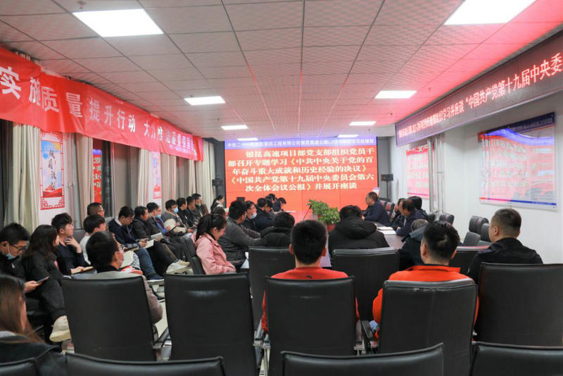 11月25日,中鐵二十一局銀昆高速公路LJ12-2標(biāo)項(xiàng)目黨支部組織全體黨員干部召開專題學(xué)習(xí)會議,學(xué)習(xí)了《中共中央關(guān)于黨的百年奮斗重大成就和歷史經(jīng)驗(yàn)的決議》《中國共產(chǎn)黨第十九屆中央委員會第六次全體會議公報》并展開座談。