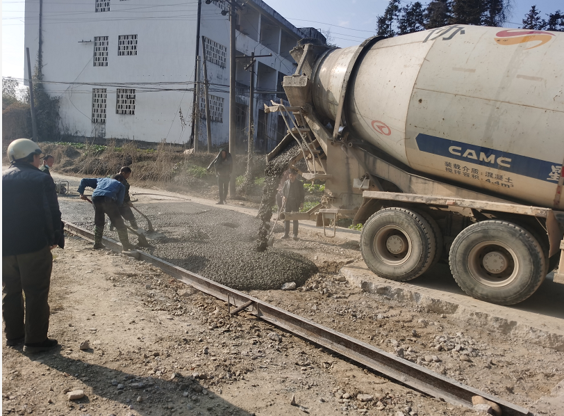 承建祁婺高速A1標及全線路面施工的中鐵二十一局三公司祁婺項目部領導,了解到當?shù)卮迕竦倪@一困難后,立即展開多方協(xié)調溝通,實地踏勘破損路面,制定施工方案。很快,項目部調來了路面清理設備和渣土運輸車,將原有破損路面清理干凈。并隨即展開整平、輾軋、底基層鋪筑和路面混凝土攤鋪施工。調動了廢料清運車3臺,7臺罐車,2臺挖機,2臺鏟車,1臺震動壓路機,工人70余人,齊齊上陣。不到一周,便將這條長700多米,寬4.5米,厚約25cm的混凝土“愛心路”展現(xiàn)在了村民面前,因此中鐵二十一局三公司成了村民眼中的“貼心人”。