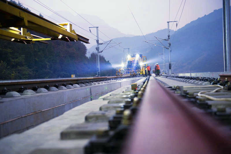 中鐵三局鋪軌施工進(jìn)入興山站作業(yè)