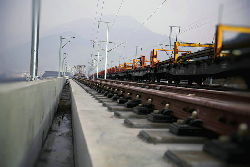 中鐵三局長(zhǎng)軌專列進(jìn)入興山站內(nèi)
