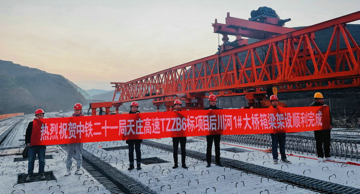 天莊高速TZZB6標(biāo)項(xiàng)目箱梁架設(shè)的順利完成,吹響了項(xiàng)目施工生產(chǎn)進(jìn)入全面沖刺階段的號(hào)角,項(xiàng)目將進(jìn)一步加快施工生產(chǎn)步伐,在確保安全質(zhì)量的前提下,爭(zhēng)取早日實(shí)現(xiàn)全線通車目標(biāo)任務(wù)。