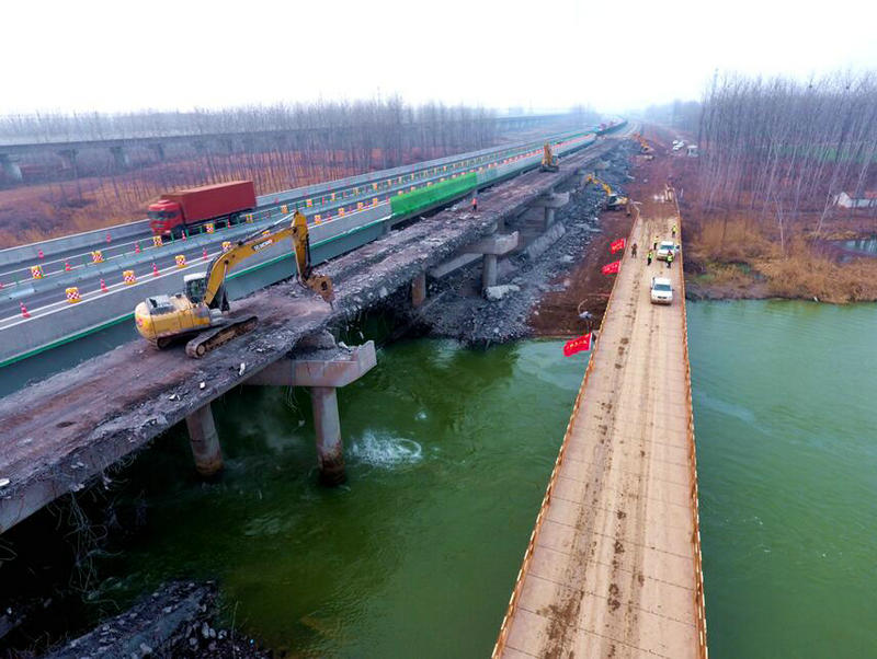 1月7日,隨著廢黃河大橋最后一片箱梁的落下,拆橋設(shè)備緩緩?fù)瞥鍪┕ぷ鳂I(yè)區(qū),標(biāo)志著中鐵一局京滬高速公路HA4標(biāo)廢黃河大橋左幅舊橋成功拆除,順利進(jìn)入清理階段。