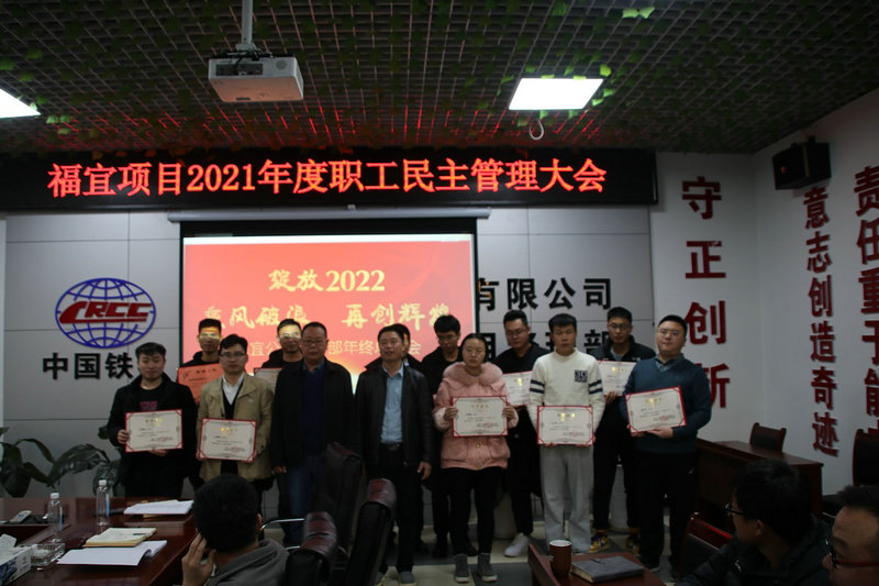 本次大會(huì)由黨支部書記徐榮勰主持,會(huì)議全面總結(jié)了2021年福宜項(xiàng)目取得的工作成績和存在的問題,安排部署了福宜項(xiàng)目春節(jié)留守及節(jié)后復(fù)工等各項(xiàng)工作,各施工班組簽訂了2022年春節(jié)后人員(設(shè)備)進(jìn)場承諾書,項(xiàng)目經(jīng)理湯尚茂在會(huì)上做了行政工作匯報(bào)、個(gè)人述職報(bào)告,對(duì)項(xiàng)目建設(shè)發(fā)表講話作出指示,并對(duì)2021年度項(xiàng)目工作表現(xiàn)突出的先進(jìn)集體和個(gè)人進(jìn)行表彰,以激勵(lì)和推進(jìn)全體職工在新的一年福宜項(xiàng)目施工建設(shè)新征程中做出更大貢獻(xiàn),實(shí)現(xiàn)福宜項(xiàng)目高產(chǎn)年和跨越式發(fā)展。