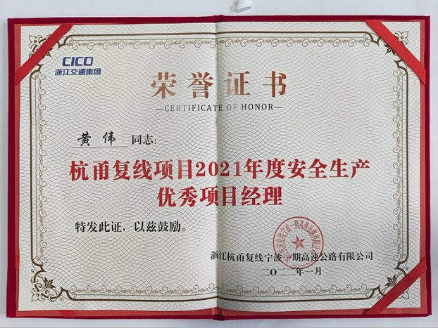本網(wǎng)訊(呂奎元 王志琴)日前,中鐵十五局集團二公司副總經(jīng)理兼杭甬項目負(fù)責(zé)人黃偉被杭甬復(fù)線寧波一期高速公路有限公司評為2021年度安全生產(chǎn)優(yōu)秀項目經(jīng)理。