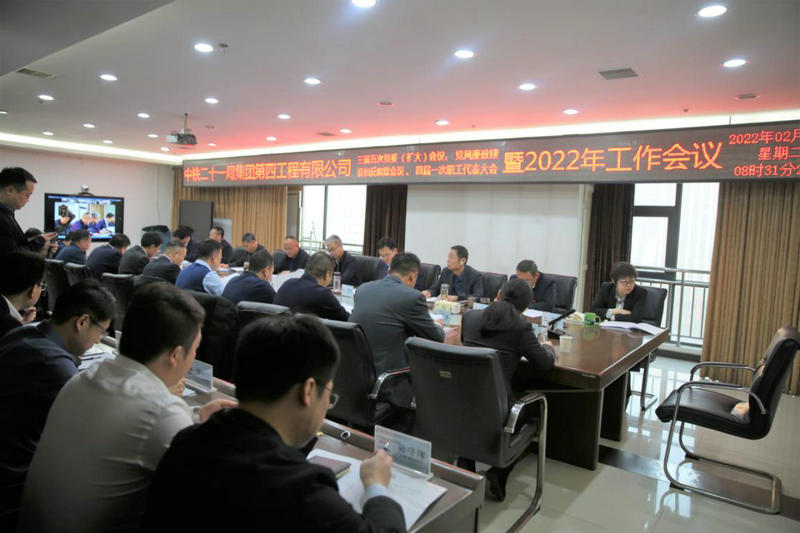 2月15日,在雄壯的國歌聲中,中鐵二十一局四公司三屆五次黨委(擴大)會議、黨風廉政建設和反腐敗會議、四屆一次職工代表大會暨2022年工作會議在西安勝利召開。會議深入貫徹落實黨的十九屆六中全會和股份公司、集團公司2022年工作會議精神,全面總結了公司2021年各項工作成果,圍繞企業(yè)“十四五”高質量發(fā)展目標總要求,客觀分析了企業(yè)內外部形勢,全面部署了公司2022年發(fā)展規(guī)劃,明確了公司2022年工作方針總路線。