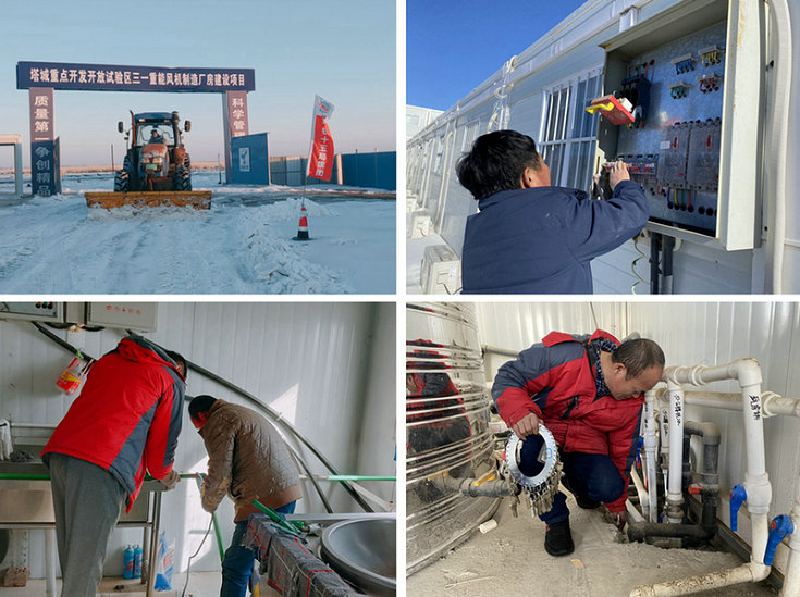 受塔城地區(qū)冬季極端低溫天氣與持續(xù)暴雪氣候影響,該項(xiàng)目園區(qū)內(nèi)部在冬季期間出現(xiàn)大面積水管凍裂、電線短路、取暖故障等問(wèn)題,后勤保障工作面臨著嚴(yán)峻的挑戰(zhàn),復(fù)工在即,時(shí)間緊迫。