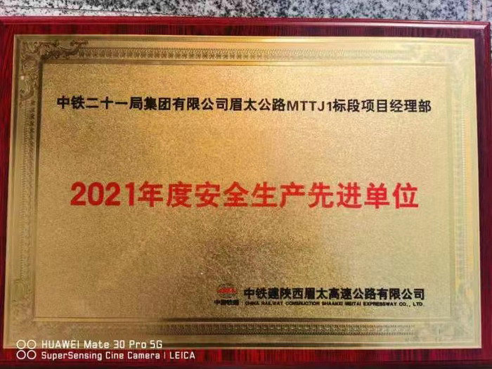 圖為眉太1標(biāo)項目部獲業(yè)主安全生產(chǎn)先進(jìn)單位