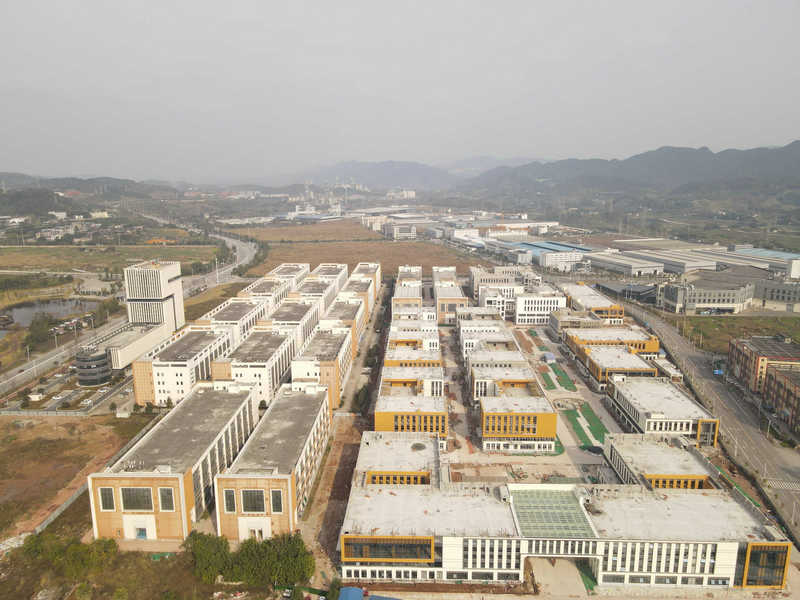 北新投資公司合川醫(yī)療器械產(chǎn)業(yè)園(加速器)項目,共15棟建筑,14棟廠房,1棟服務(wù)用房,目前主體、砌體、抹灰工程、屋面工程已完成,外飾面、幕墻、園林工程正大面積施工中,已完成總進度的80%。圖為該項目全景。 (鄧靜 攝)