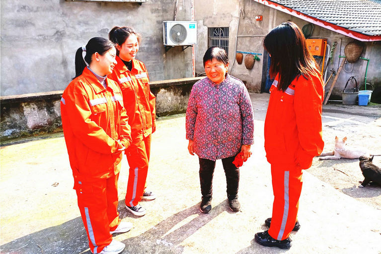 “您要照顧好身體,出門做好疫情防護措施,有什么困難的地方可以給我們講”,活動中,該兩項目女職工來到留守的老人家中,與老人親切的聊起了家常,認真詢問老人的身體近況和生活起居情況,詳細了解目前面臨的困難需求。在聊天過程中,女志愿者們還主動詢問具體需要打掃哪些地方,在得知老人需求后,便開始熟練而有序的幫助老人清理雜物,大家忙得不亦樂乎??粗堇镂萃庹麧嵉臉幼樱先藗兿蛑驹刚邆冐Q起了大拇指。