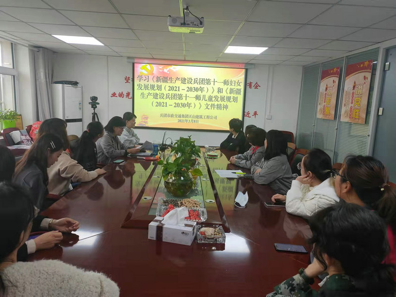 為了營造節(jié)日氣氛,3月8日,公司在會(huì)議室投影上打出了“祝天山公司全體女職工‘三八’婦女節(jié)快樂”的橫幅?;顒?dòng)上,由工會(huì)組織女職工學(xué)習(xí)了《新疆生產(chǎn)建設(shè)兵團(tuán)第十一師婦女發(fā)展規(guī)劃(2021--2030年)》《新疆生產(chǎn)建設(shè)兵團(tuán)第十一師兒童發(fā)展規(guī)劃(2021--2030年)》和兵團(tuán)市政交通集團(tuán)下發(fā)的《關(guān)于開展2022年“三八”國際婦女節(jié)紀(jì)念活動(dòng)的通知》,觀看了先進(jìn)女性代表、“七一勛章”獲得者張桂梅的感人事跡,組織女職工進(jìn)行座談,還進(jìn)行了吹乒乓球、運(yùn)乒乓球、跳繩、踢毽子、你來比劃我來猜等趣味性文體活動(dòng),最后,還為每個(gè)女職工頒發(fā)了紀(jì)念品。