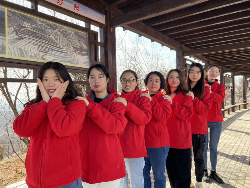 踏青活動地點選在金雞坪,金雞坪位于彭陽縣白陽鎮(zhèn)玉洼村,從北向南,縱向十余里的山梁,遠遠望去猶如一只雄雞,一條紅色的砂石路貫穿于坪中,猶如一條巨龍,獨特的觀景臺,開闊了視野,路旁桃花樹怒放著,芳香著肺腑。大家在你追我趕中順利登頂,一路上女職工們暢談家庭、工作、生活和學習,到處都留下了歡聲笑語。女職工懷著對企業(yè)的美好憧憬,對個人及家庭的美好祝愿,分別在自己心中,許下了自己的心愿。