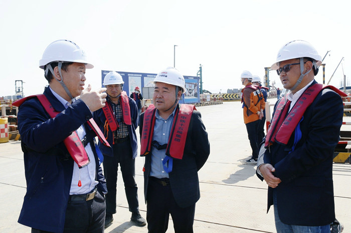 隨后,樊獻鵬察看了金塘大橋北側(cè)匝道橋樁基、承臺、墩柱施工情況,他對工程安全質(zhì)量、進度和環(huán)保均表示滿意,他說:“十五局是一個有戰(zhàn)斗力的單位,有能力把濱?;ネüこ谈珊?,這一點我很放心。”根據(jù)黃偉匯報內(nèi)容,結(jié)合察看情況,他提出3點指導(dǎo)意見:一是新冠疫情防控工作只能加強不能放松,要鞏固現(xiàn)有成果,從措施上、細(xì)節(jié)上筑牢防護網(wǎng),打造一方凈土。二是進一步優(yōu)化資源配置,調(diào)動一切積極因素,從下構(gòu)到棧橋、承臺、墩柱的施工進度要加快,今年已經(jīng)過去2個多月,要超前謀劃,臺風(fēng)有可能還會襲擊寧波,施工進度要往前趕,前緊后松,每月的任務(wù)不欠賬。三是繼續(xù)抓好安全生產(chǎn),近水和高空施工潛在隱患多,防護措施一定要跟上,對員工要進行杜絕蠻干和違章教育,從源頭上杜絕各類事故苗頭。