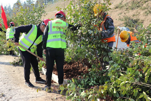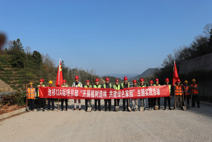 在植樹活動(dòng)現(xiàn)場,黨旗、團(tuán)旗、彩旗迎風(fēng)招展,氣氛濃郁,祁門縣林業(yè)局、池祁高速項(xiàng)目辦領(lǐng)導(dǎo)對池祁12A標(biāo)積極參加植樹活動(dòng)表示感謝,稱贊“你們的熱情參與,為山坡增添了一抹綠色,為共建綠色家園種下了希望,種下了勃勃生機(jī),以實(shí)際行動(dòng)踐行“綠水青山就是金山銀山”的生態(tài)環(huán)保理念,為當(dāng)?shù)鼐G色生態(tài)做出了功在當(dāng)代,利在千秋的貢獻(xiàn)”。