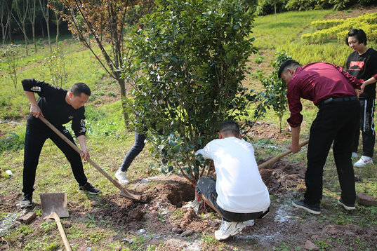 在工作人員的統(tǒng)籌協(xié)調(diào)下,30余名員工8人一組,運苗、挖坑、栽樹、填土、澆水,活動現(xiàn)場熱火朝天、熱鬧非凡,兩個多小時里,大家通力合作、齊心協(xié)力、干勁十足,將20余株山茶花樹苗播種在充滿生機和希望的春天里,用實際行動優(yōu)化公園環(huán)境,守護城市綠水青山,共建美好生態(tài)家園。