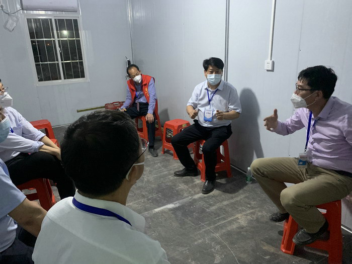 隔離點現(xiàn)場指導施工 據(jù)悉,本次參加欽州隔離點建設的多數(shù)人員都參加過百色抗疫。2月7日中午中鐵二十一局六賓高速項目接到緊急通知,晚上11時便由南寧抵達百色并投入施工,8個工作日完成了2所學校、3家酒店、1家醫(yī)院,共2700間房的改造任務,同時還完成2515間窗戶防護網(wǎng)、212米圍擋、5間移動式板房安裝。其中百色學院隔離點改造工程被百色市住建局評為樣板工程。時隔一月他們再次逆風而行、奔赴一線,積極投身這場疫情防控阻擊戰(zhàn),用實干和擔當踐行著新時代鐵軍使命。