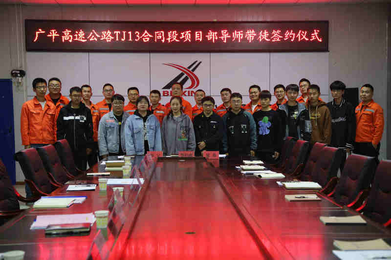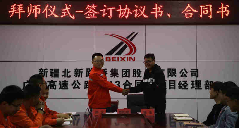 鐵路工程建設網(wǎng)訊 (通訊員 譚彩蓉)“凡學百藝,莫不有師”。3月23日晚,北新路橋集團北新巖土公司廣平高速公路TJ13合同段項目部舉辦了2022屆導師帶徒簽約儀式,在全體職工的見證下簽訂協(xié)議書,延續(xù)“老帶新”、“傳幫帶”的傳統(tǒng),為加快人才培養(yǎng)步伐,增強企業(yè)發(fā)展后勁奠定堅實基礎。