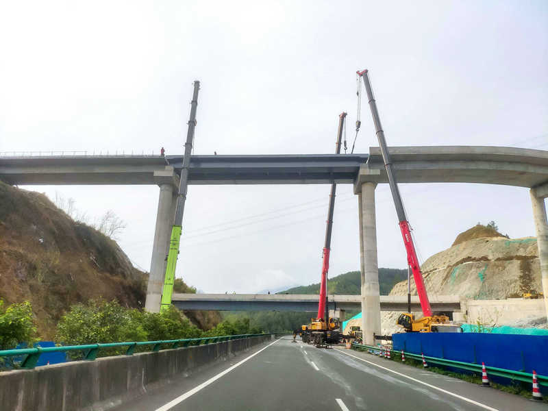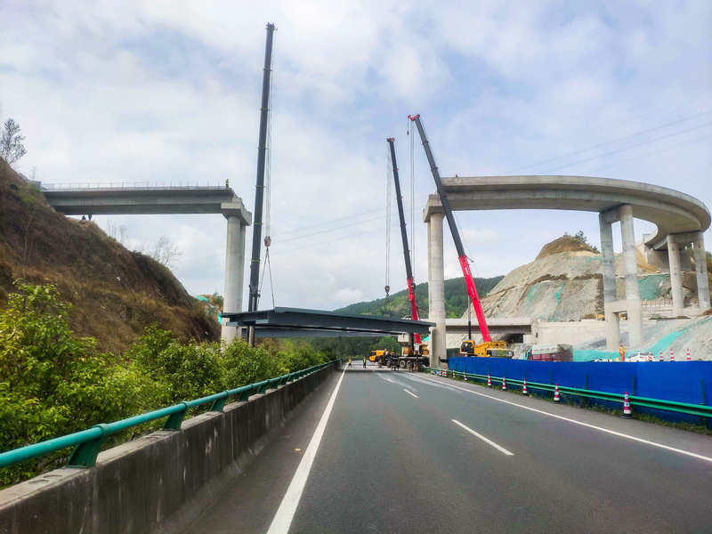 此次鋼箱梁架設(shè)需上跨蘭海高速(廣甘段)主干道施工,時間緊、任務(wù)重,梁體垂直提升高度近30米,是該項目最后一處“危大”工程。為確保箱梁安全精準架設(shè),該項目成立攻堅團隊,深入現(xiàn)場調(diào)查研究,多次組織召開專題會議,優(yōu)化吊裝方案,認真做好施工前的技術(shù)交底,使作業(yè)人員能熟練掌握技術(shù)規(guī)程和操作規(guī)范。同時,搶抓作業(yè)有利窗口期,將蘭海高速(廣甘段)道路車輛分流至在建廣平高速匝道繞行,采用3臺吊車同時協(xié)作施工,經(jīng)過11個小時的緊張作業(yè),“落梁”作業(yè)圓滿完成。